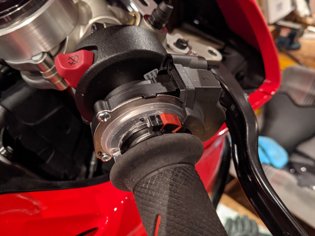 Der Durchfluss der Tränen der Ergriffenheit werden bei der Panigale V4, wie auch bereits bei der 1299, über ein sog. Drive by Wire gesteuert. Bedeutet ganz einfach, dass es keine mechanische Verbindung zwischen Gasgriff und Drosselklappe gibt. Dies wird elektronisch gesteuert.