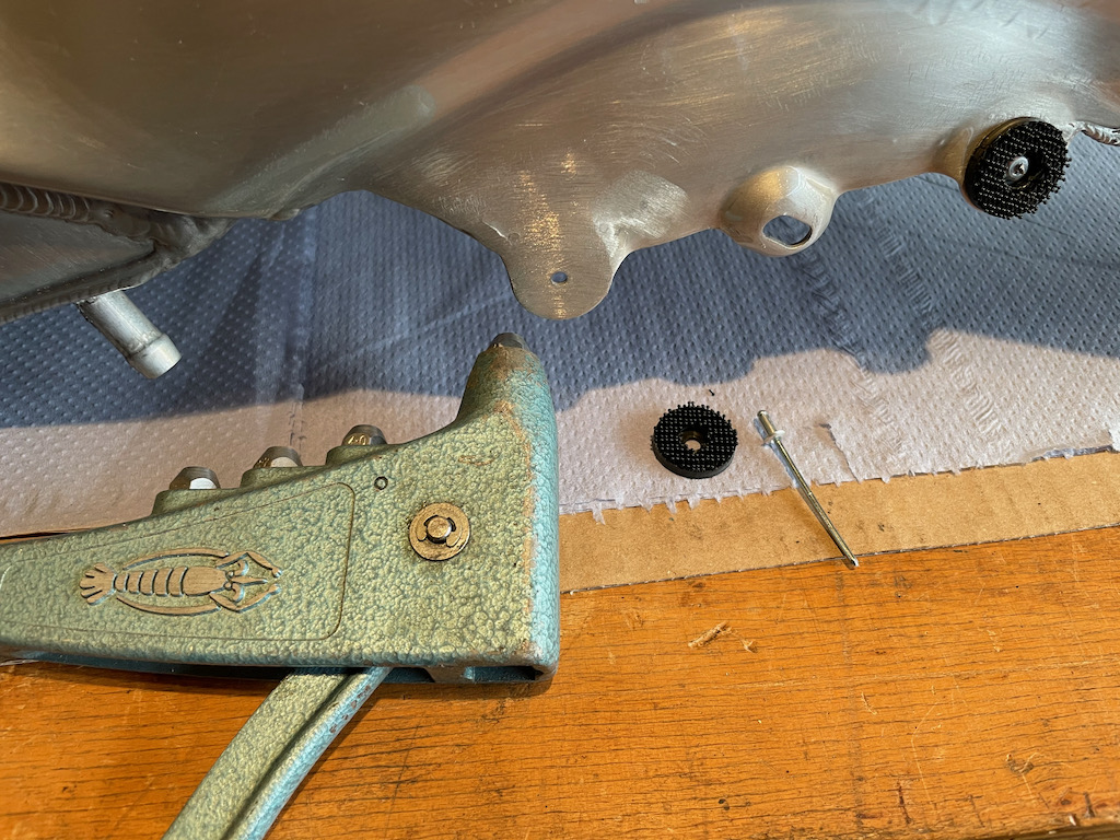 Heute befestige ich die seitlichen Klett-Halter mit Blindnieten am Tank und baue die Benzinpumpe wieder ein.