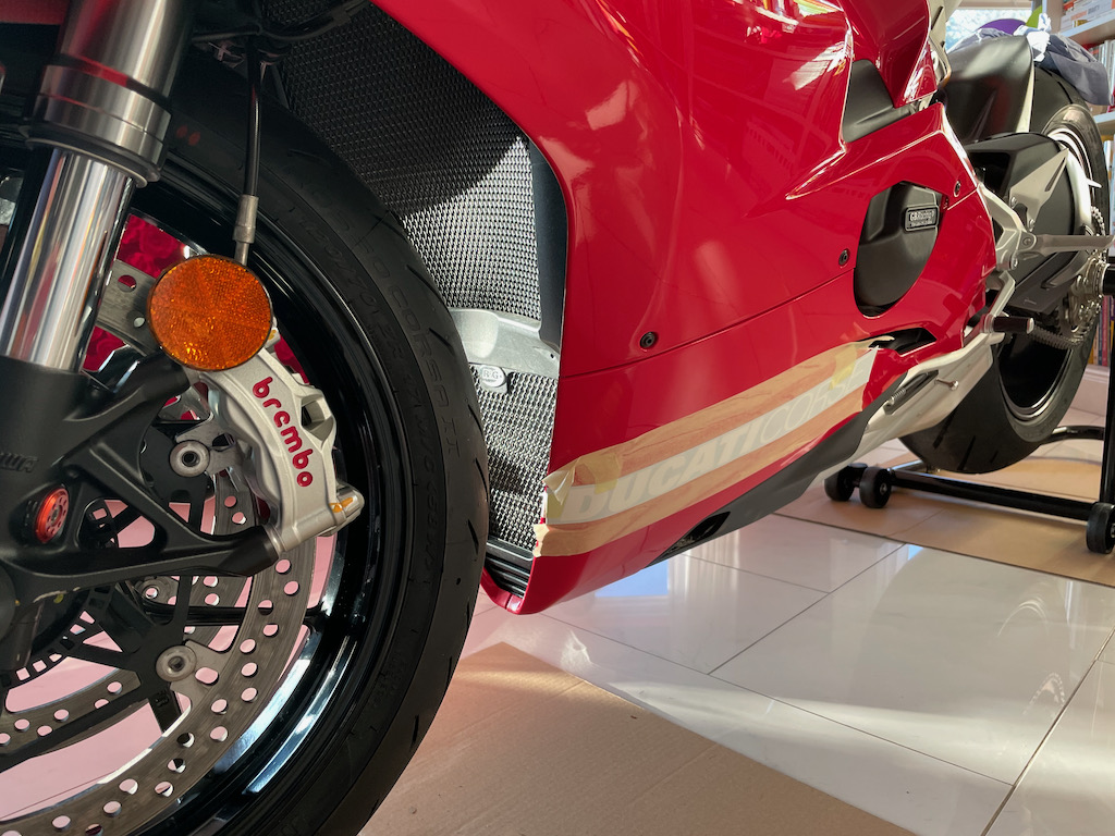 Als letzte Handlung bringe ich noch die Aufkleber auf der Verkleidung an.