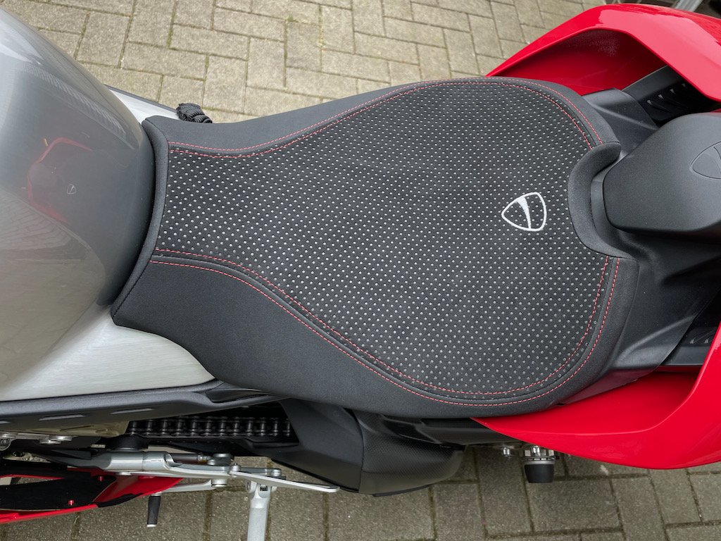 Die Ducati Performance Komfort Sitzbank fand schon ihren Platz auf der 1299. Dort war ich sehr zufrieden. Auf Grund dieser Erfahrung dachte ich, für die V4 ist die DP Komfort Sitzbank auch eine gute Idee.