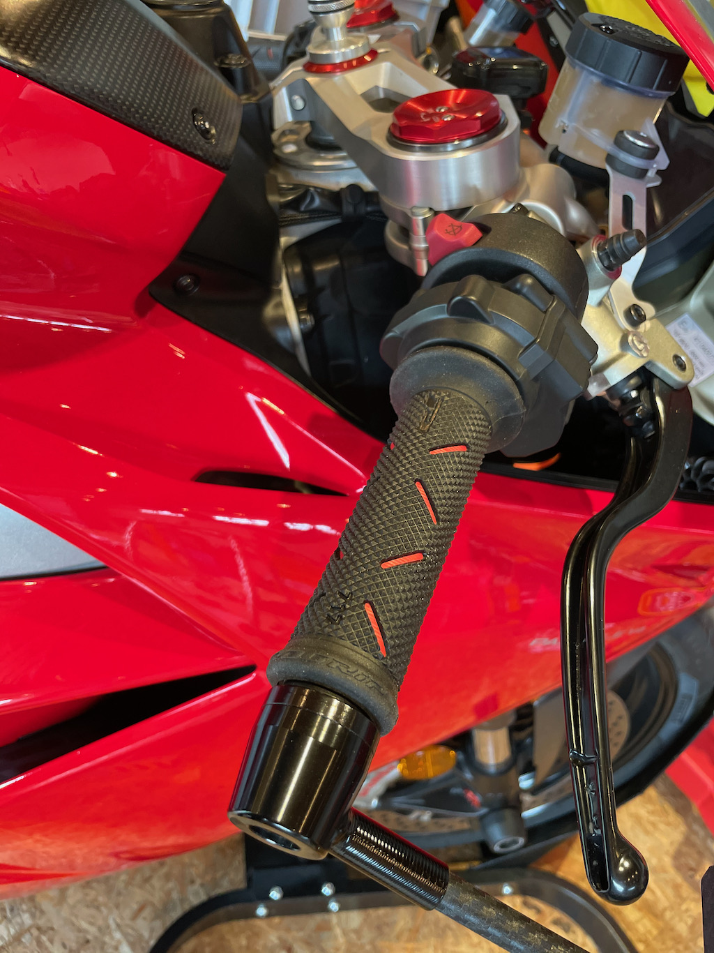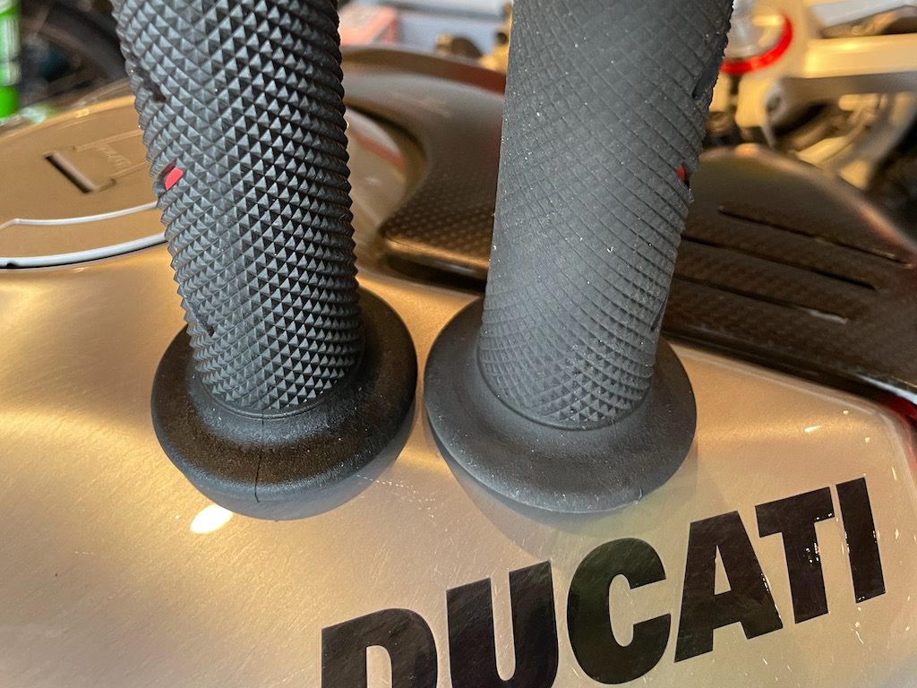 Die montierten Progrip Griffe sind bereits mächtig abgenutzt. Gegen Einwurf klingender Münze können diese direkt bei Ducati bezogen werden. Kann man machen, muss man aber nicht.
