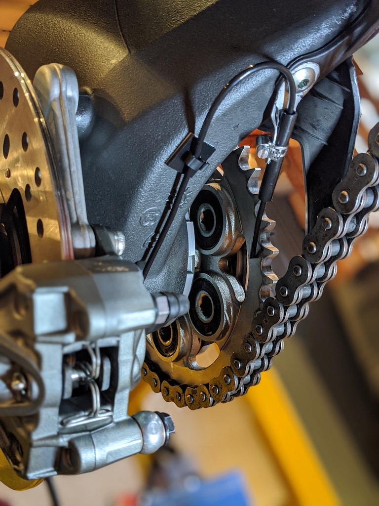 Durch das Fehlen der Kettenfinne bei meinem Modell fehlt eine Möglichkeit, die Aufnahme des sogenannten Injector in direkter Nähe des Kettenblatts zu befestigen.