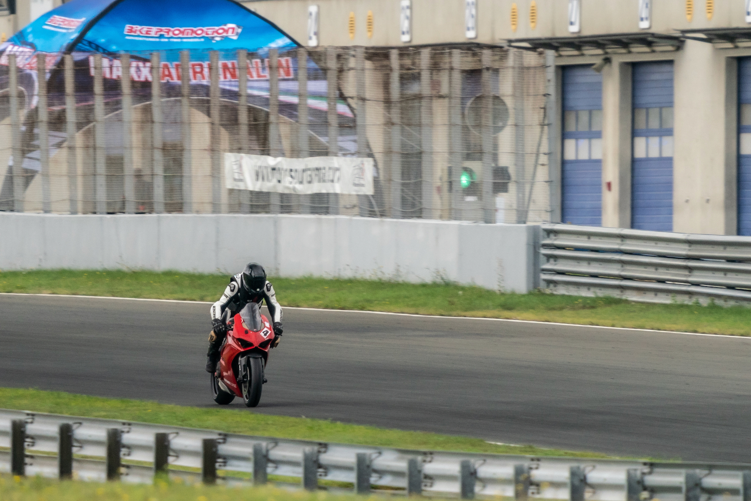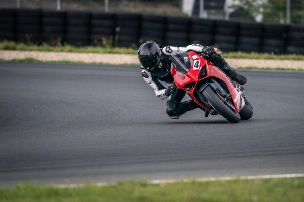 Zum Beginn des zweite Turns ist die Strecke trocken und das Fahren geht los. Das Wetter bleibt allerdings die zwei Tage durchwachsen und einige Turns fallen für mich auf Grund nasser Strecke und Slicks auf der V4 aus.