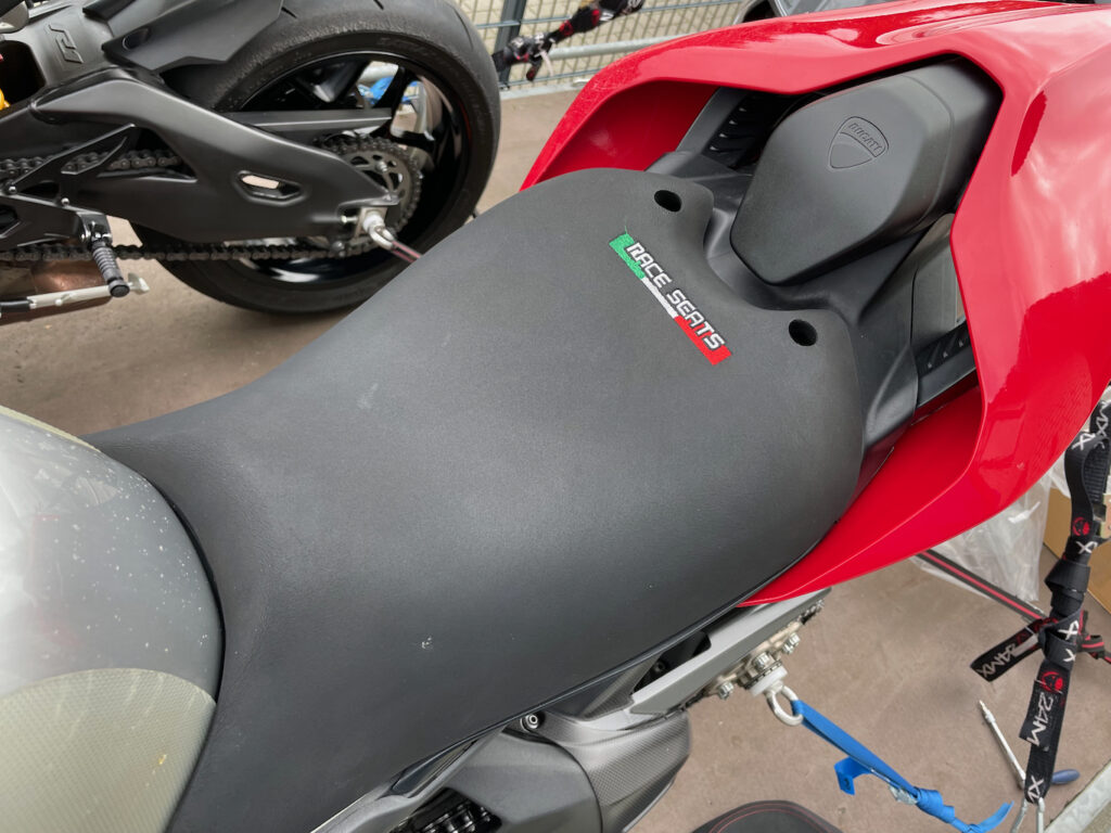 War sonst noch was? Ja. Passend zur Veranstaltung wurde der neue Race Seat geliefert. Die Sitzhöhe ist mit +50 mm gegenüber dem Seriensitz und damit +30 mm über dem DP Racing Seat auf den ersten Blick sehr hoch.