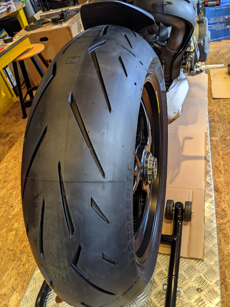 Ich glaube nicht dran, dass in absehbarer Zeit ein weiterer Hersteller einen, mit den für Panigale V4 erforderlichen Abmessungen, passenden Hinterreifen anbietet. Ersatz muss trotzdem her. Der beste Kompromiss für den Hinterreifen ist für mich aktuell der Pirelli DIABLO™ ROSSO CORSA II.