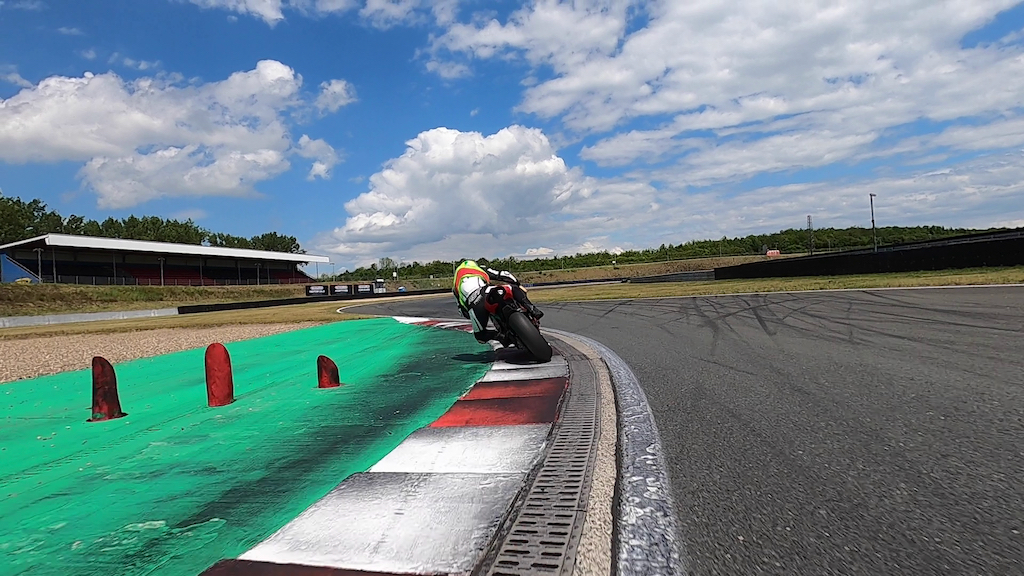 In der Videoanalyse ist gut zu erkennen, dass zwischen der Linie, die ich dachte zu fahren und der, die ich tatsächlich auf den Asphalt bringe, nun ja, da ist noch Luft nach oben u.a. was das Ausnutzen der Strecke angeht.