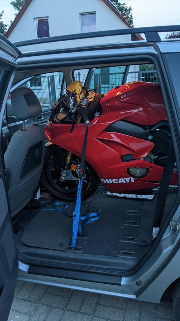 Bisher musste es zur Abholung noch ein Anhänger oder ein Transporter sein. Es geht auch anders. Mit den technischen Daten und einem Zollstock bewaffnet alles ausgemessen und beschlossen: das passt auch in das Familienmobil. Natürlich nicht in einem Stück. Kopfverkleidung und Spiegel müssen demontiert werden. Das ist machbar.