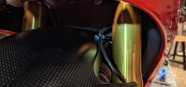 Der Kotflügel von Fullsix ist scheinbar etwas anders als der originale, bzw. der bei der V4 verbaute von DP Performance. Die Verlegung des Kabels für den Raddrehzahlsensor muss optimiert werden, damit ein Schleifen und...