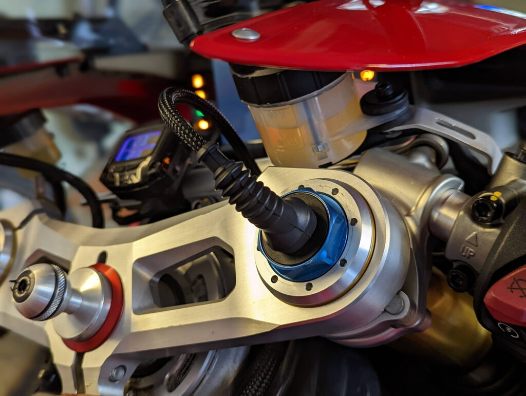 Die V4S ist hinten mit einem Öhlins TTX36 Federbein und vorn mit einer Öhlins NIX30 Upside-Down-Gabel mit 43 mm Standrohrdurchmesser und Tauchrohren mit TiN-Beschichtung ausgestattet. Ferner noch der heute unverzichtbare Lenkungsdämpfer, ebenfalls von Öhlins. Angesteuert jeweils durch das Öhlins Smart EC 2.0. Also ein Fahrwerk mit dynamischer Dämpfungsveränderung.