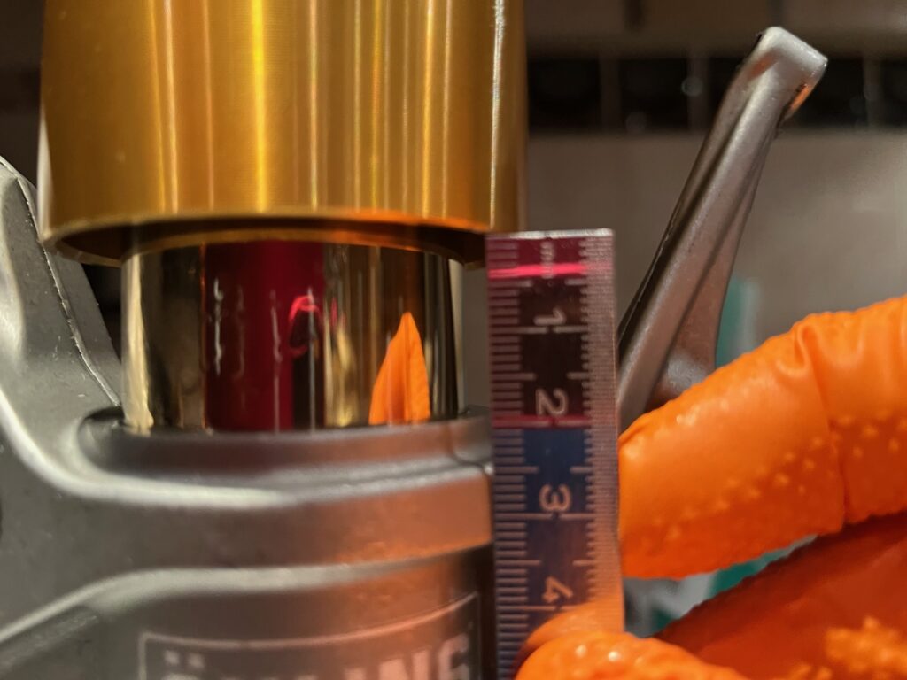 Zuvor wird die Gabel für die Feststellung des tatsächlichen Federwegs montiert.