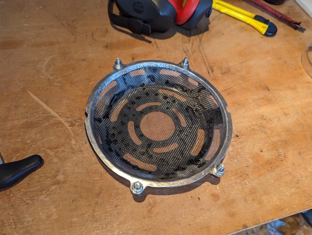 Zum Einsatz kommt ein Gitter, welches eingeklebt wird. Darüber hinaus wird ein Ring zur Abstützung des Gitters am Rand des Kupplungsdeckels angefertigt.
