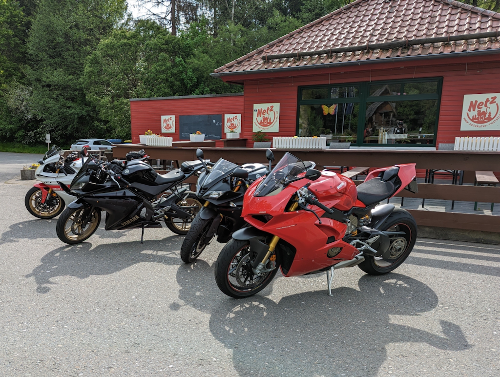 Ein paar Tage im Harz. Die ersten Tage ist der Nachwuchs mit den 125er Mopeds dabei. Perfekt zum Einrollen. Das, sowie einige 30er Zonen und ich entdecke den Engine Mode mit reduzierter Leistung und sanfterer Gasannahme für diese Anforderungen. Allerdings geht der Quickshifter etwas ruppig ans Werk.