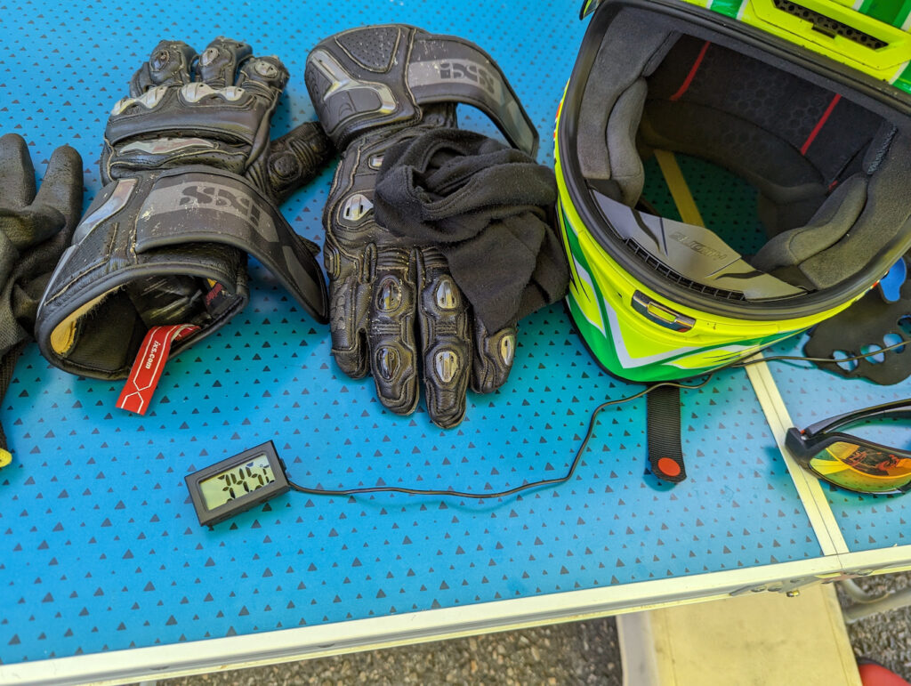 Pünktlich zum Ende des Tages kommt der Regen und damit auch die Abkühlung. Ich nutze die Zeit und drehe den hinteren Slick. Am nächsten Morgen ist alles wieder trocken. Der zweite Tag beschert sehr viel angenehmeren Temperaturen.
