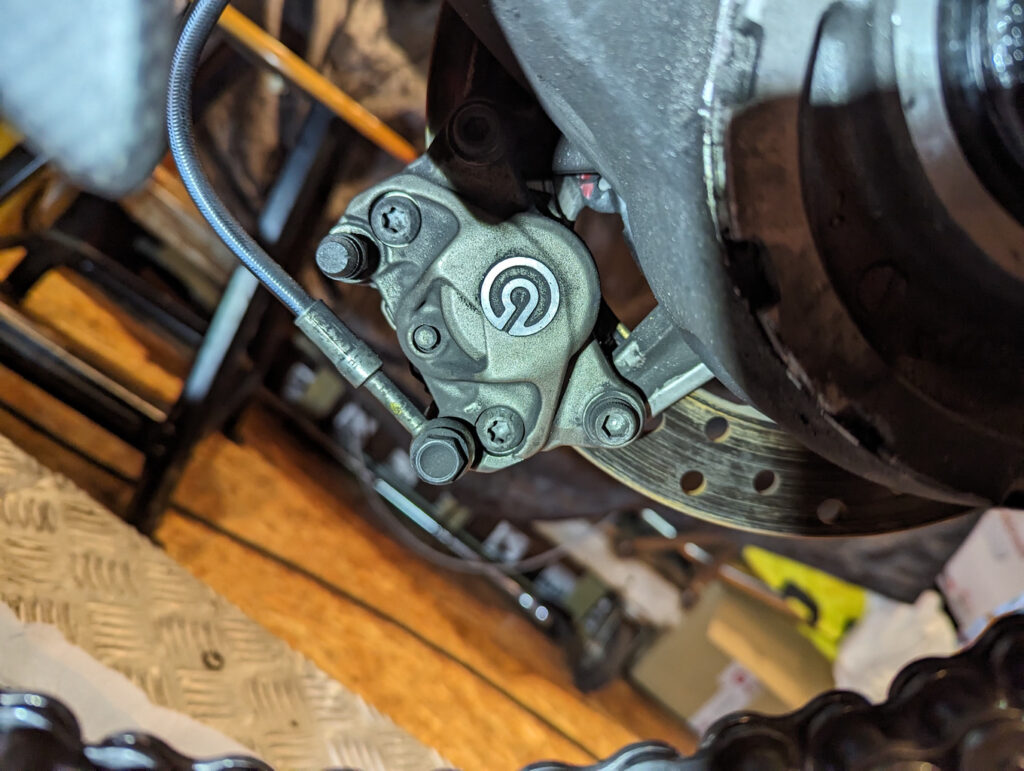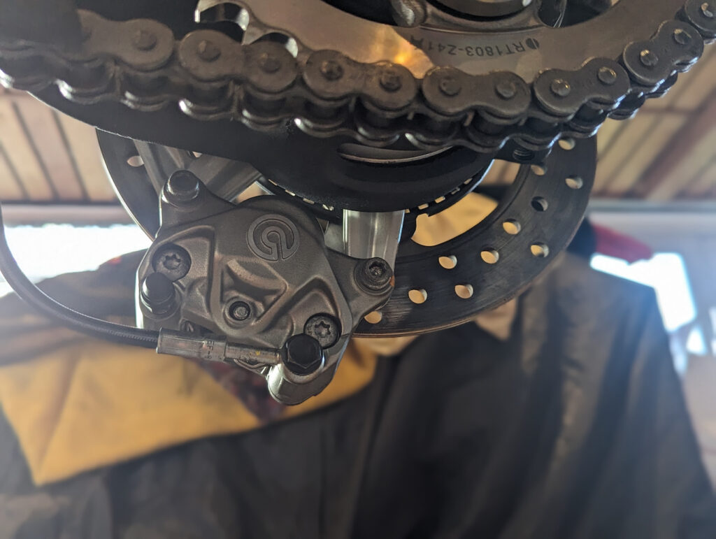 Und wie immer zeigt sich bei den ach so gut geputzt und gepflegten Panigale das gleiche Bild. Der hintere Bremssattel ist ein guter Indikator…