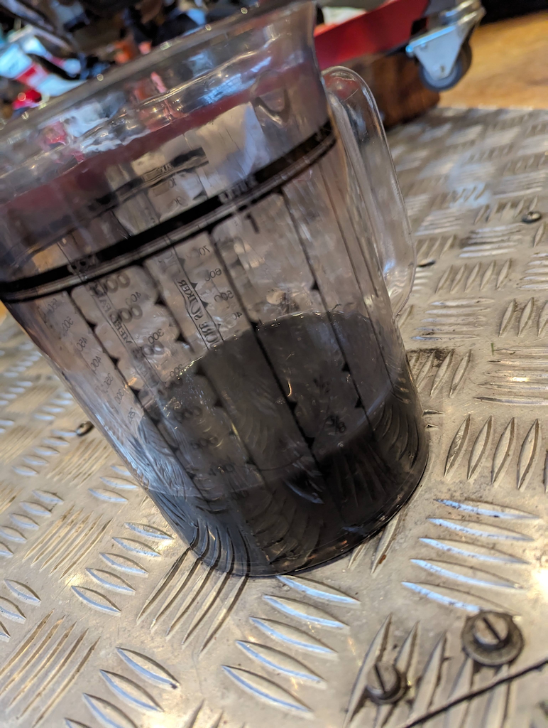Der Gabelservice steht laut Wartungsplan alle drei Jahre auf dem Programm. Das ist nach meiner Erfahrung ebenfalls viel zu spät. So wie das Gabelöl aussieht, ist bisher kein Wechsel des Gabelöls vorgenommen worden.