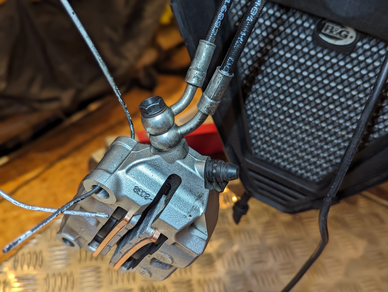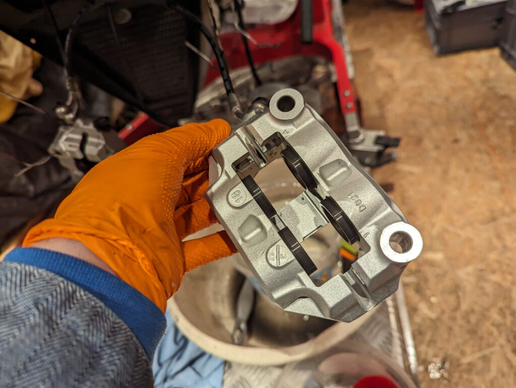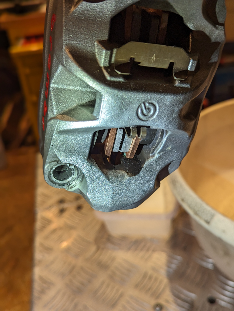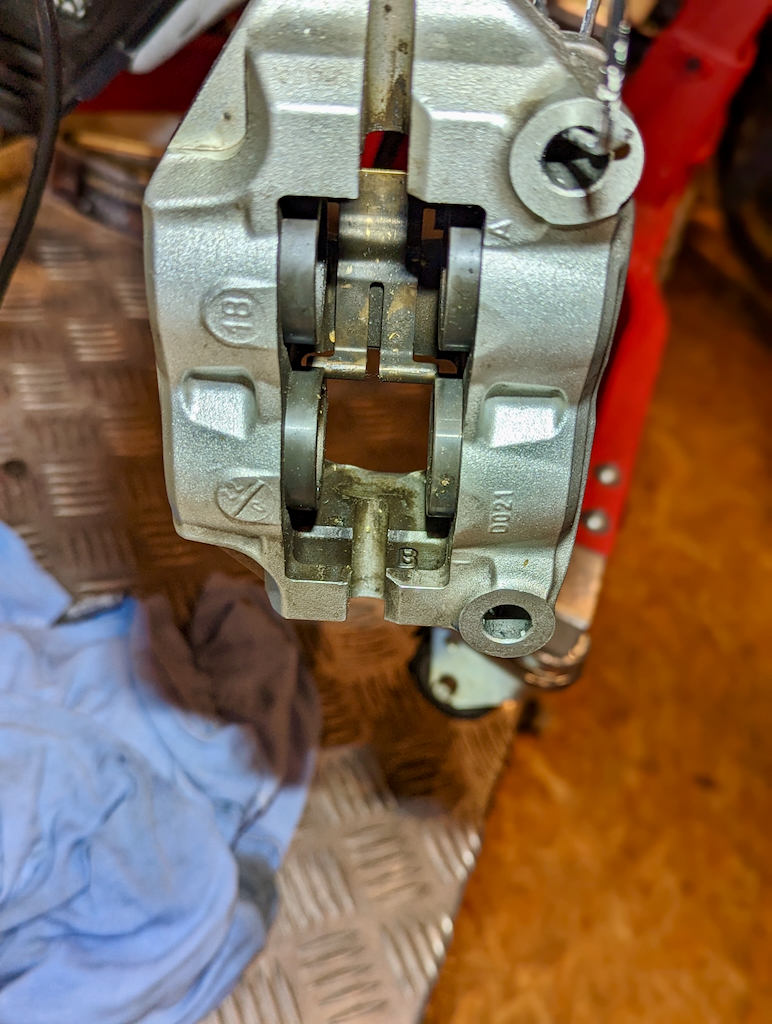 Spätestens beim Wechsel der Bremsbeläge hätte ich die Sättel gereinigt. Das hat der Vorbesitzer auch getan. Allerdings ist da noch Luft nach oben.
