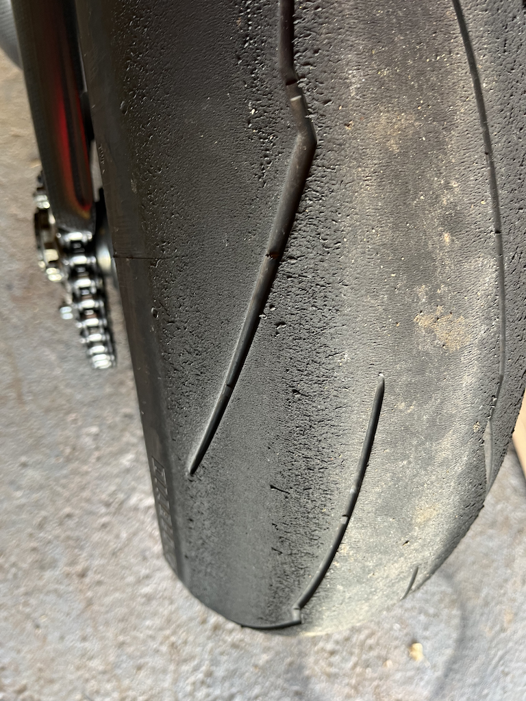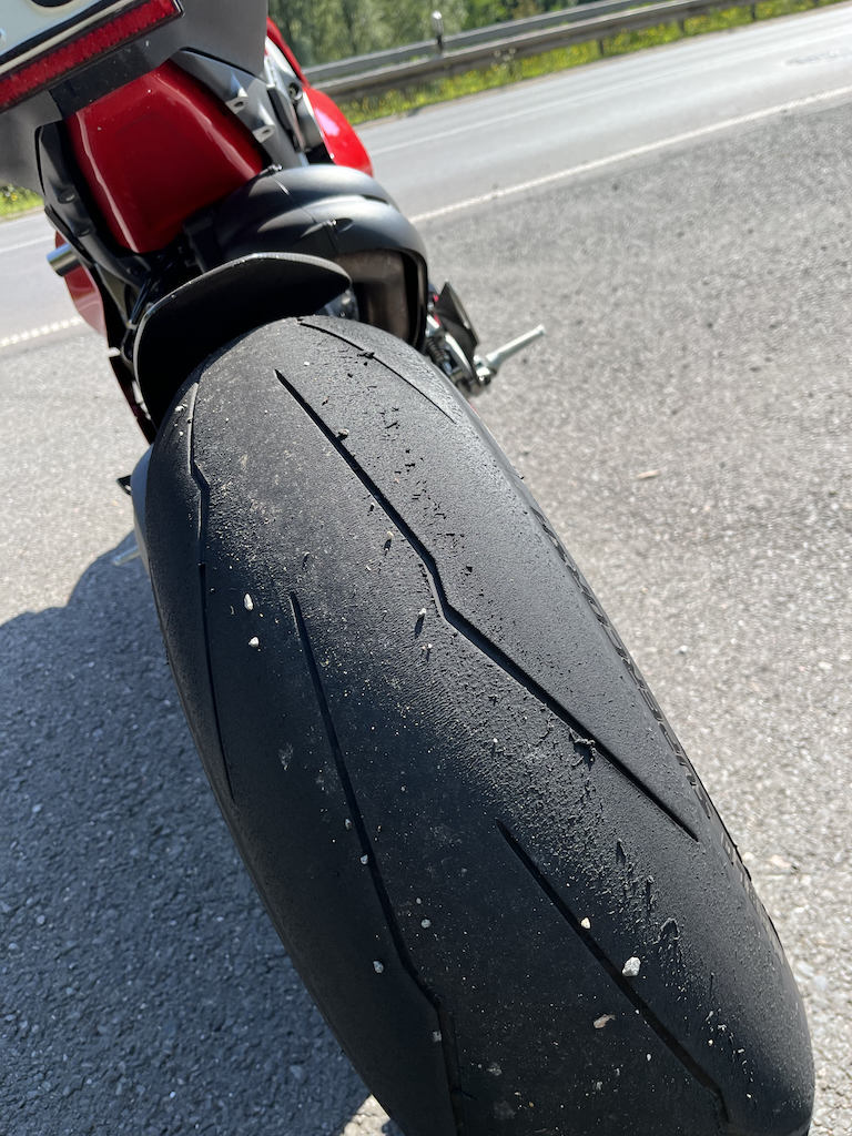 Das Reifenbild für den Landstraßenbetrieb war vertretbar. Nicht gut, aber ok. Allerdings verändert sich das Reifenbild bei etwas zügigerer Fahrt. Das ist dann nicht mehr ok.