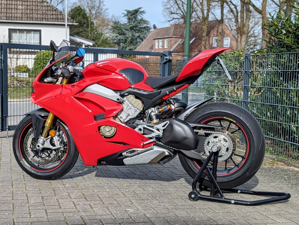 Die Panigale wurde darüber hinaus poliert und mit einer Keramikversiegelung versehen. Und wie immer: die V4S wurde, bis auf den Motor, einmal auf links gedreht, alles kontrolliert und wo notwendig ersetzt. Damit befindet sich die V4S optisch in einem bessern Zustand als bei der Auslieferung und technisch quasi im Neuzustand. Und mit den Optimierungen, die sich bei der V4 bewährten, funktioniert sie auch entsprechend 😁.